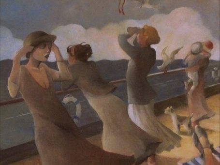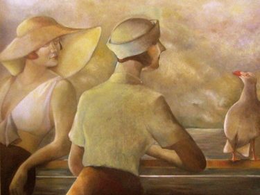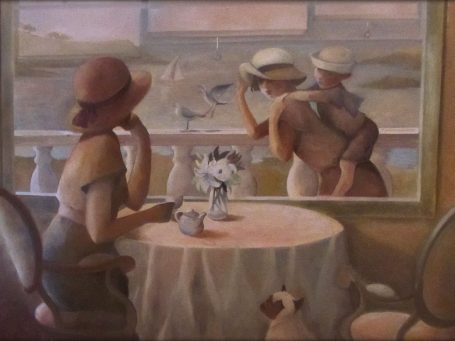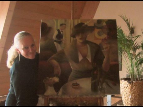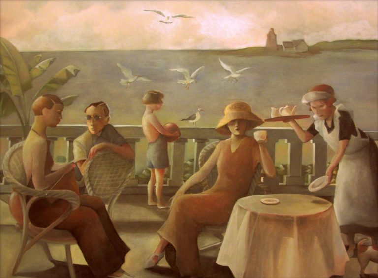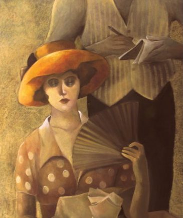 In the world of painting, a Gatsby atmosphère blossoms in an unspoilt world, where the bright colours and glamour of the 1920s combine harmoniously. OIL 60 fig.